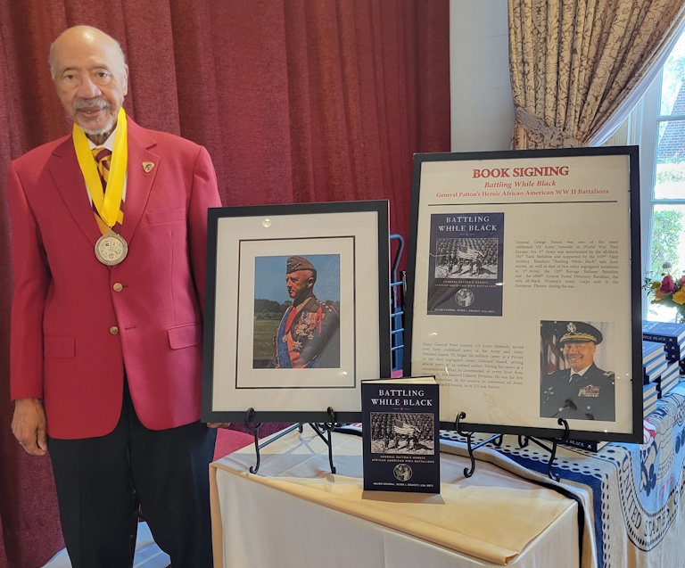 Major General Peter J. Gravett, USA (Ret) offers his latest book, Battling While Black: General Patton’s Heroic African American WWII Battalions, which provides insightful perspectives of Black service members succeeding against an institutional environment of racism and bigotry found in the military after WWI and throughout WWII. MG Gravett started collecting Black Military history items 60+ years ago while growing up in a Southern California public housing project with his 11 siblings.